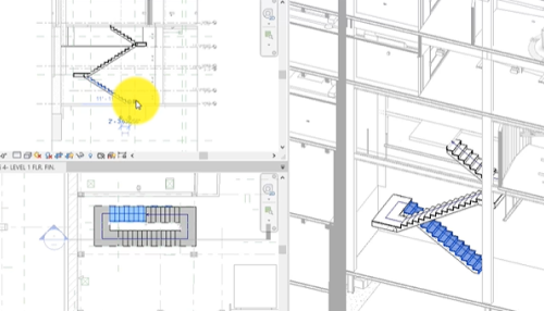 Use layout options to position a stair. Once a stair is in place use grip controls in canvas to make modifications..