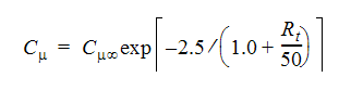 is the same as the value for the high Reynolds model and R*t*** is again the turbulence Reynolds number.