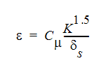 The turbulent energy dissipation can be defined in terms of length scale as: