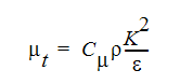 Several of the turbulence models used by Autodesk® CFD use a two-equation model to determine the eddy viscosity and eddy conductivity variables. The two equations describe the transport of the turbulent kinetic energy, K and the turbulent energy dissipation, . The eddy viscosity and eddy conductivity are calculated using: