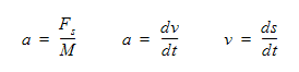 where a is the acceleration, M is the mass, v is the velocity, s is the displacement and t is time.
