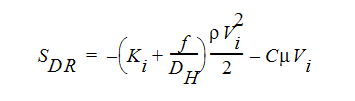 where i refers to the global coordinate direction (u, v, w momentum equation) and the other terms are described in the previous section. Note that the K-factor term can operate on a single momentum equation at a time because each direction has its own unique K-factor. The other two resistance types operate equally on each momentum equation.