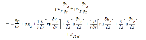 For axisymmetric geometries and steady-state conditions with swirl velocity component (out-of-plane component), these equations can be written as: