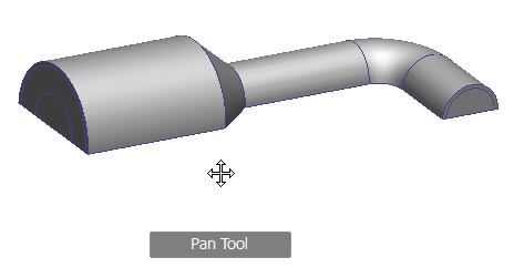 After selecting Pan from the SteeringWheel, drag the pointing device to move the model in the desired direction. For example, drag upward to move the model up. Drag downward to move the model down. When the Pan command is active, the Pan cursor (a four-sided arrow) displays.
