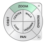 SteeringWheels combine many of the common navigation commands into a single interface. They are specific to the context from which you view a model.
