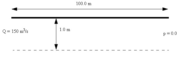 This pressure drop equation applies to fully developed flows so the pressure drop extracted from the numerical results starts from a point that is 60.0 meters down-stream of the inlet.