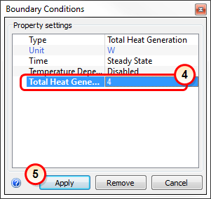 4. On the Total Heat Generation row, enter 4.