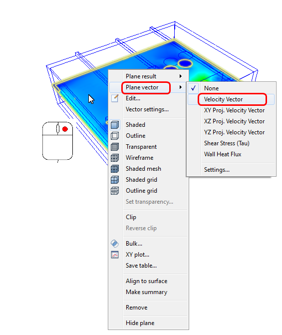 4. To show vectors on the plane, right click, and select Plane vector. Click Velocity Vector: