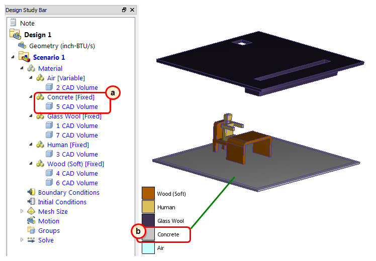 On the Design Study bar, confirm the material assignment for the Concrete part.