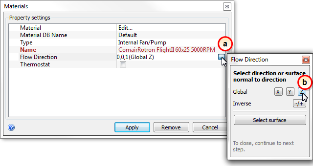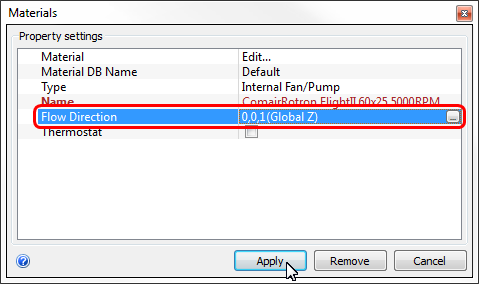 6. Verify that the flow direction is 0, 0, 1, and click Apply.