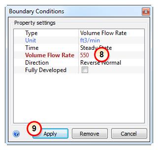 8. On the Volume Flow Rate row, enter 550.