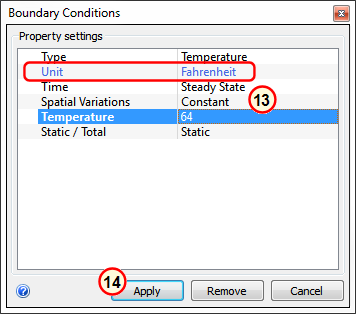 13. Verify the Units are Fahrenheit. On the Temperature row, enter 64.