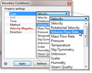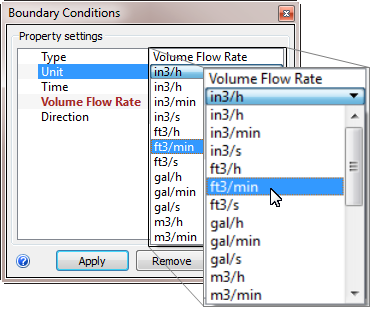 6. On the Type row, select Volume Flow Rate.