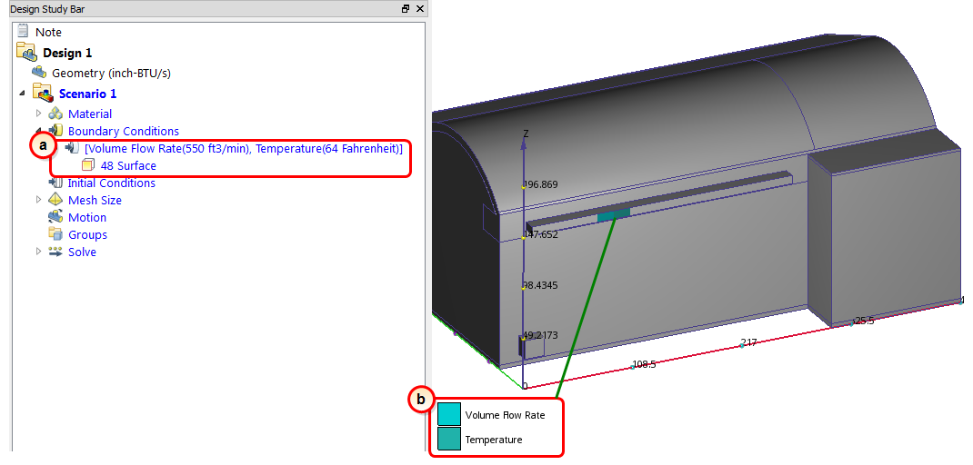 15. To verify that the two boundary conditions are properly assigned to the supply, check the Design Study Bar and the colored stripes on the supply surface: