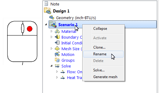 5. In the Design Study bar, right click on Scenario 1, and click Rename.