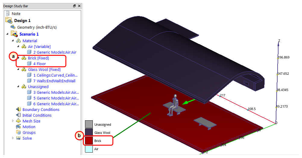 7. To verify that the Brick material is properly assigned, check the Design Study Bar and the part coloring: