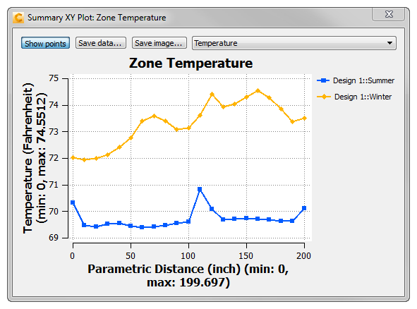 In this step, we'll use the XY Plot that we created earlier to compare the Summer and Winter temperature profiles across the upper bound of the occupied zone.