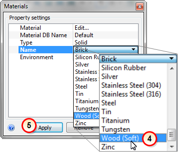 - a. In the Design Study Bar, confirm the material setting on the Wood (Soft) parts.
