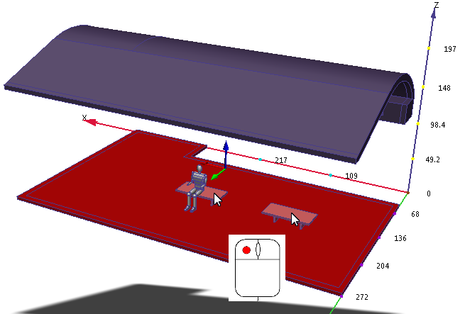 Note: The wall and air parts should still be hidden, allowing easy access to the benches. If they are not, simply hide them by middle clicking on both. This makes it much easier to select the benches.