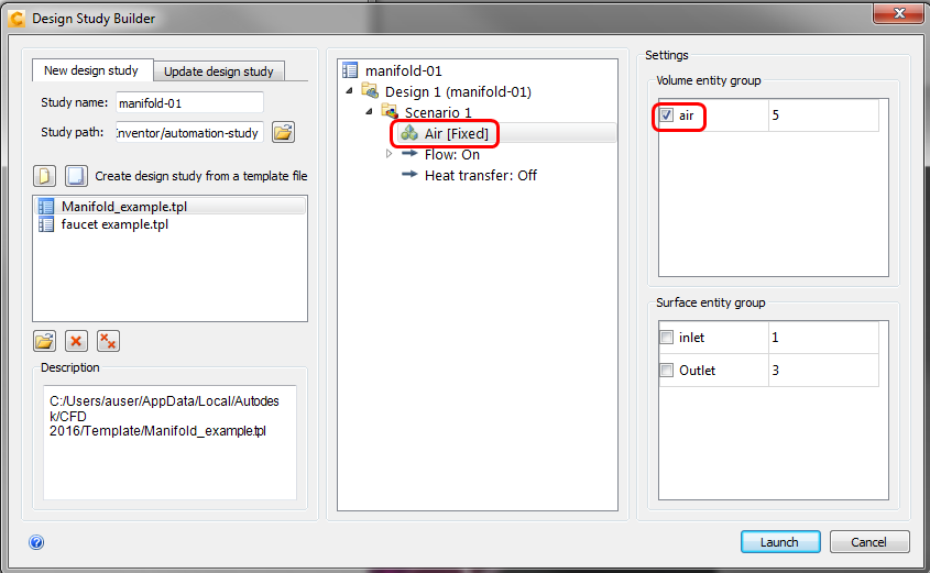In this step, we map the material setting to the CAD Entity Group. This causes the settings to be applied to the parts or surfaces contained in each group when the model is launched.
