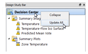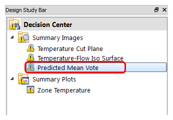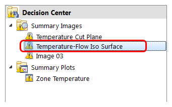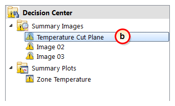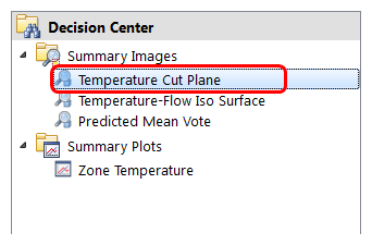6. In the Decision Center, activate the Temperature Cut Plane Summary Image: