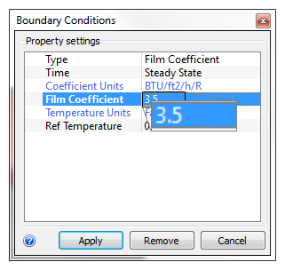 It's hot outside for our summer design day, and we're going to model the external conditions with an applied U value (also known as a convection condition or film coefficient). Because this scenario simulates a design day, we'll use a value that simulates air movement only by natural convection and a high temperature outside of the exhibit hall. (Basically, it's hot and there's no shade!)