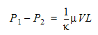 The governing equation for pressure drop as a function of permeability is: