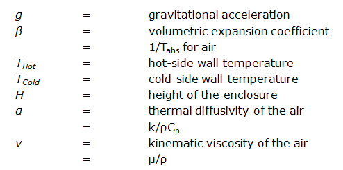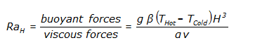 The Rayleigh number describes the transition point. Qualitatively, the Rayleigh number is the ratio between buoyant forces and viscous forces. The buoyant forces cause air motion; the viscous forces oppose it. The Rayleigh number is computed from: