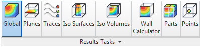 Use Global to control results appearance on the entire model. The controls in the right-click context menus and Global context panel apply to all model surfaces. Clicking Global from any of the other results tasks closes all open dialogs. A good use for Global is to quickly clear the graphics window of dialogs before you capture an image.