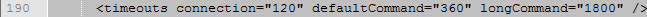 Note: If you increase the defaultCommand value higher then 1000, you must increase the executionTimeout value to an equal or higher value. This is found on the following line: