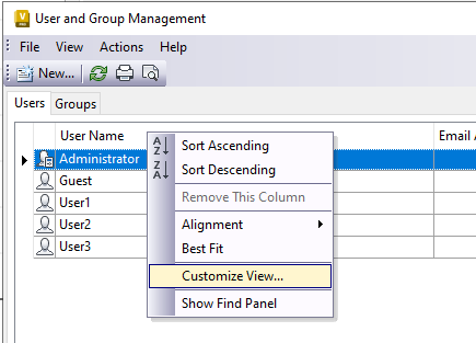 You can customize your display by adding or removing column fields. By customizing your view, user management becomes much more tailored to your requirement.