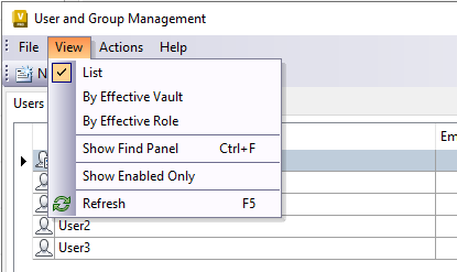 View user profiles in a flat list, a list grouped by effective vaults which the users can access, or a list grouped by effective roles.