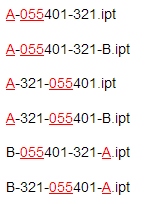 Let's say I want to search for file A-055401-321.ipt. This search is represented by six (6) search tokens: