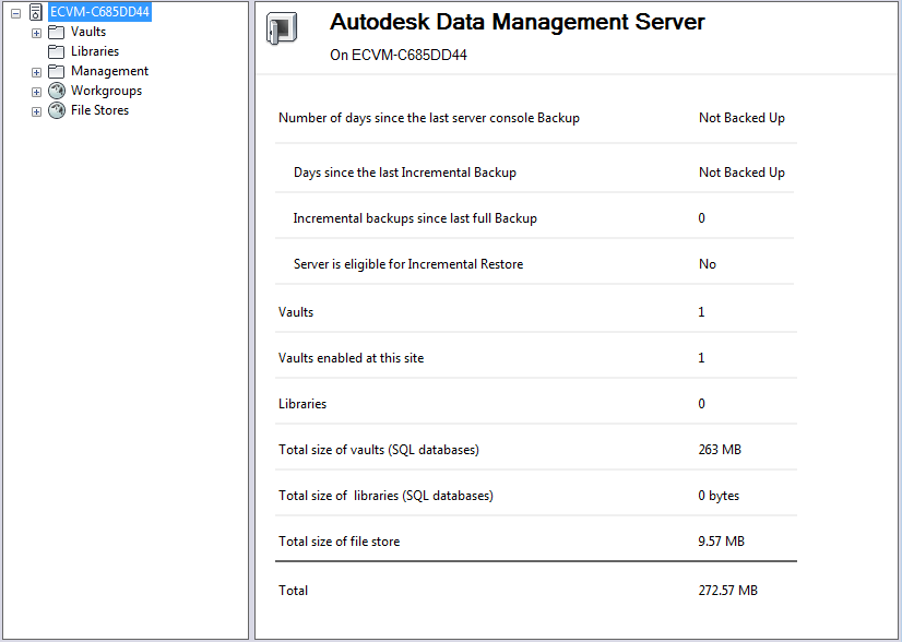 View details about a selected Vault Server, including number of days since the last server console backup, number of enabled vaults, and number of libraries.