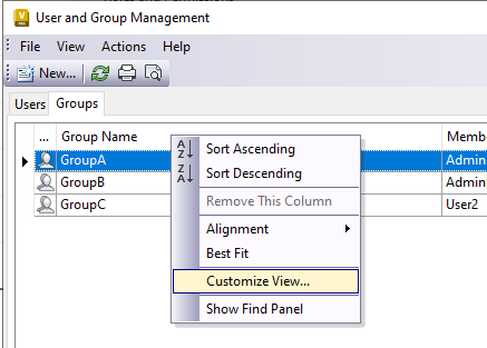 You can customize your display by adding or removing column fields. By customizing your view, user group management becomes much more tailored to your requirement.