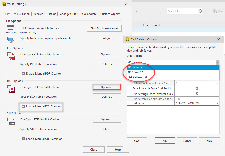 | Upload To Selected Vault Path | Defines a specific location (using Browse) to store the published DXF file. |