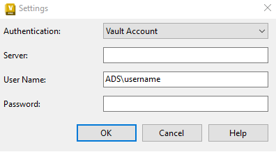 Vault Account: Requires a Vault-specific user name with a password.