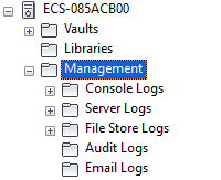 Access Console, Server, File Store, Audit, Vault Gateway, and Email log files in the Management Folder.