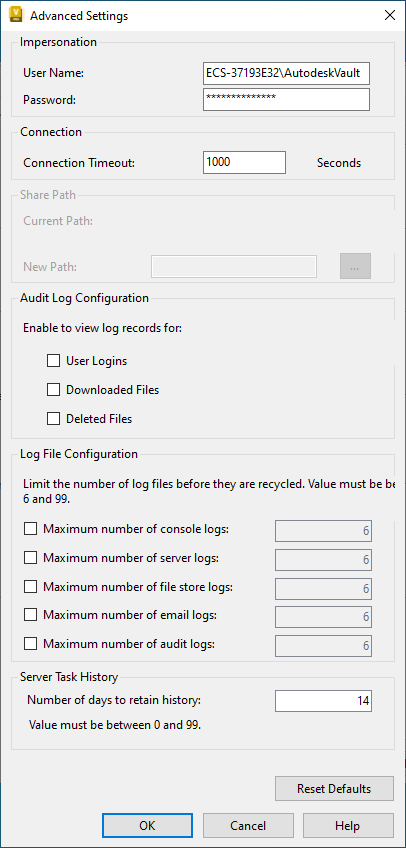 Configure the number of console, server, and email logs retained on the Vault server.