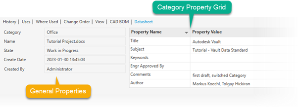 In Chapter 02, we already introduced the two areas of properties in Datasheets: The General Property area and the Dynamic Category Properties Grid.