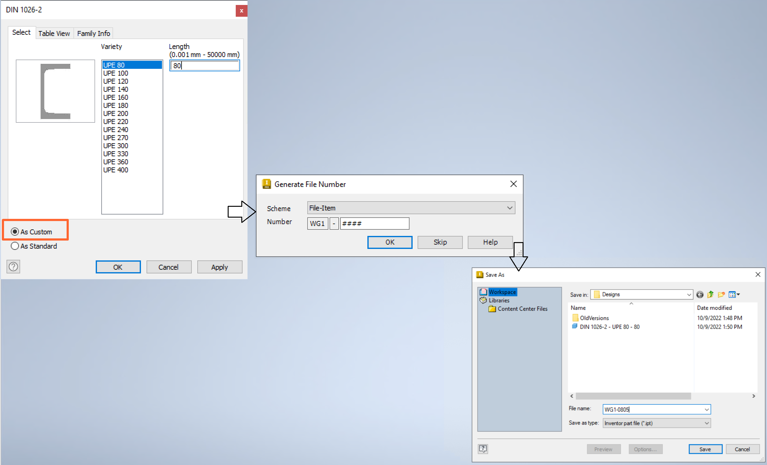 When you add a cc part as a custom part, by default Vault file numbering and VDS save are suppressed. You can save the custom cc component to the project path. There is no file numbering and VDS interaction.