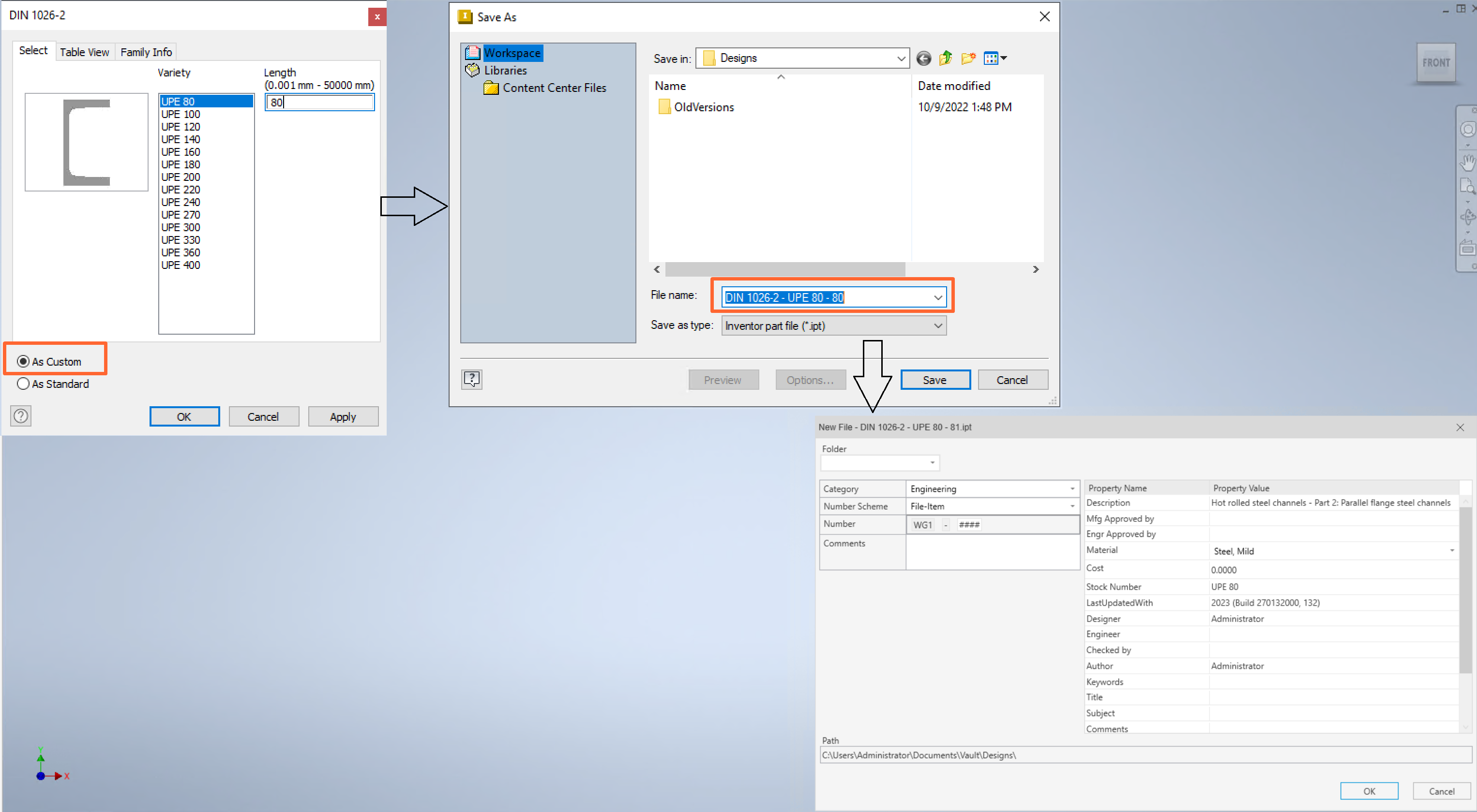 Here, when you save a custom cc component to the project path, Save As Dialog is part of "Place from Content Center" option. The VDS dialog overwrites both the file location (as selected in the VDS dialog) and file name with file Vault number or manual file name.