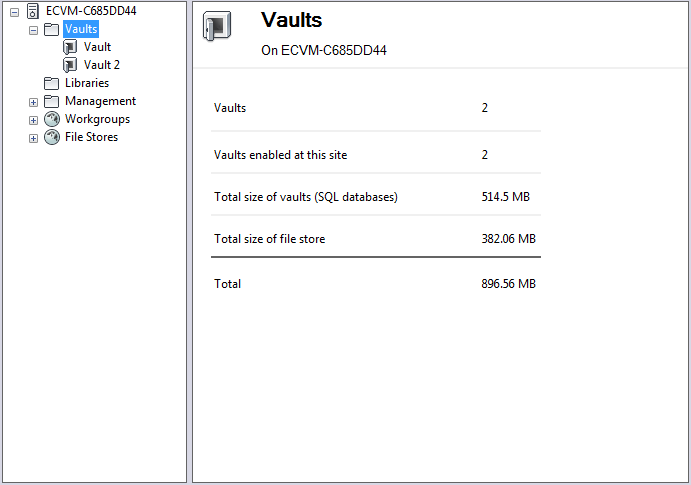 View a summary of vaults enabled at the selected site. You can view and manage specific vaults by clicking on them.