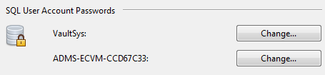 When Vault is installed, default passwords are provided for the VaultSys and ADMS_%SiteName% SQL Service accounts. The administrator can change these passwords to be more secure.