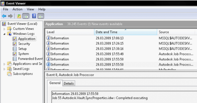 The Job Processor logs all jobs in the Event viewer Application log on the workstation. This log can be useful when troubleshooting failed or incomplete jobs.