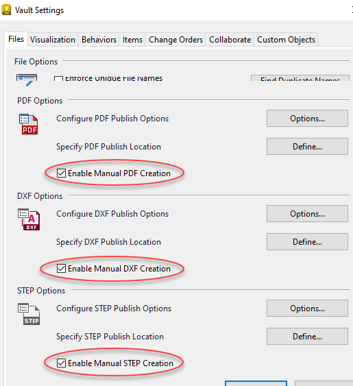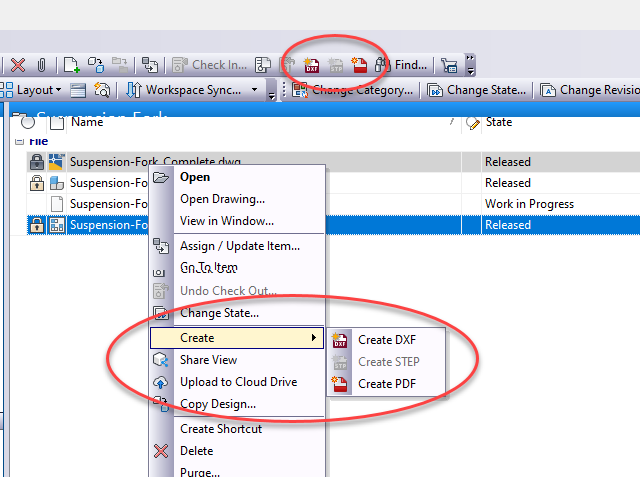 When using this command, you can create DXF, PDF and STEP (STP) files without going through lifecycle state change for a CAD file.