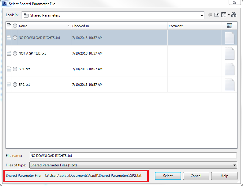 Select the .txt Shared Parameters file that you want to activate and slick Select.