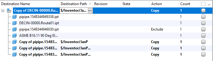 The main Copy Design view shows the name of the files available for copy, destination folder, the action that will be performed on the file, the revision and state of the file, and how many instances (count) of the file occur within the current list. Whether you are duplicating a drawing, a complete design structure, or individual components, you can edit key properties during the copy process by using the intuitive copy/paste functionality or importing directly from Excel.
