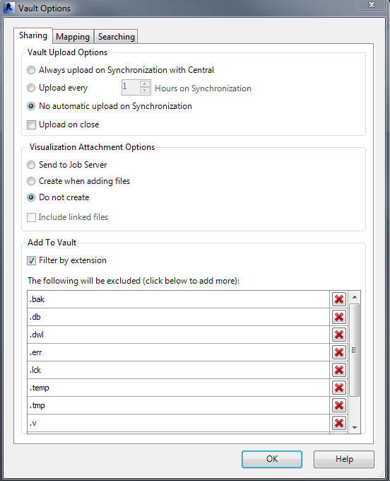Visualization Attachment Options control how Visualization files are created when files are added through the Vault add-in for Revit.