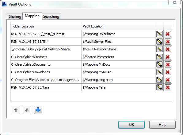 Map any local, network, or Revit server folder to any Vault folder on the Mapping tab of the Vault Options dialog.